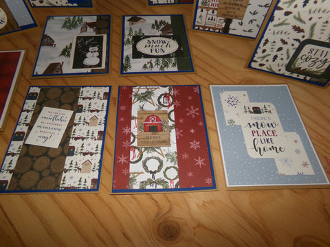 Each one is unique. Winter/Holiday themed papers on the outside. Blank on the inside, perfect for adding your own sentiment.